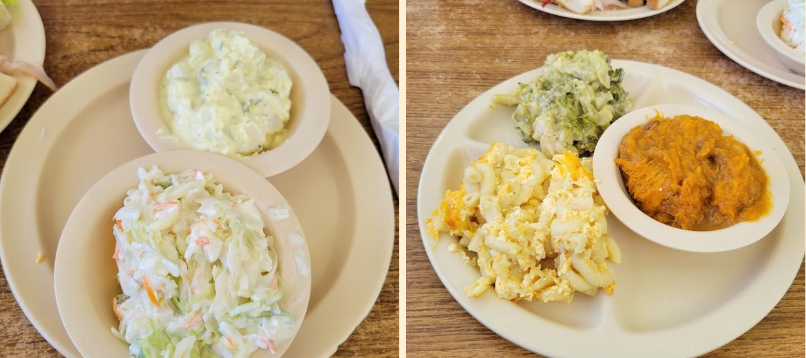 Try the excellent beef pot roast or fried chicken. The homemade pies and cakes are also popular choices. Seafood lovers will appreciate the whole catfish and flounder.